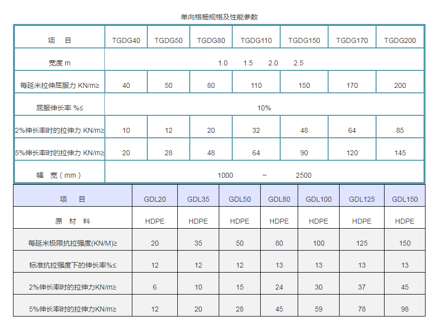 单向塑料土工格栅是一种以高分子聚合物为主要原料,加入一定的防紫外线、抗老化助剂,经过单向拉伸使原来分布散乱的链形分子重新定向排列呈线性状态,经挤出压成薄板再冲规则孔网,然后纵向拉伸而成的高强度土工材料。这种过程中使高分子成定向线性状态并形成分布均匀、节点强度高的长椭圆形网状整体性结构。此种结构具有相当高的拉伸强度和拉伸模量,抗拉强度达到100-200Mpa,接近低碳钢的水平,大大优于传统的或现有的加筋材料,特别是我公司此类产品更具有超国际水平的高早期(伸长率在2%—5%)拉伸强度和拉伸模量。给土壤提供了理想的力的承担和扩散的连锁系统。该产品拉伸强度大(>150Mpa),适应各种土壤,是目前广为采用的加筋加固材料。